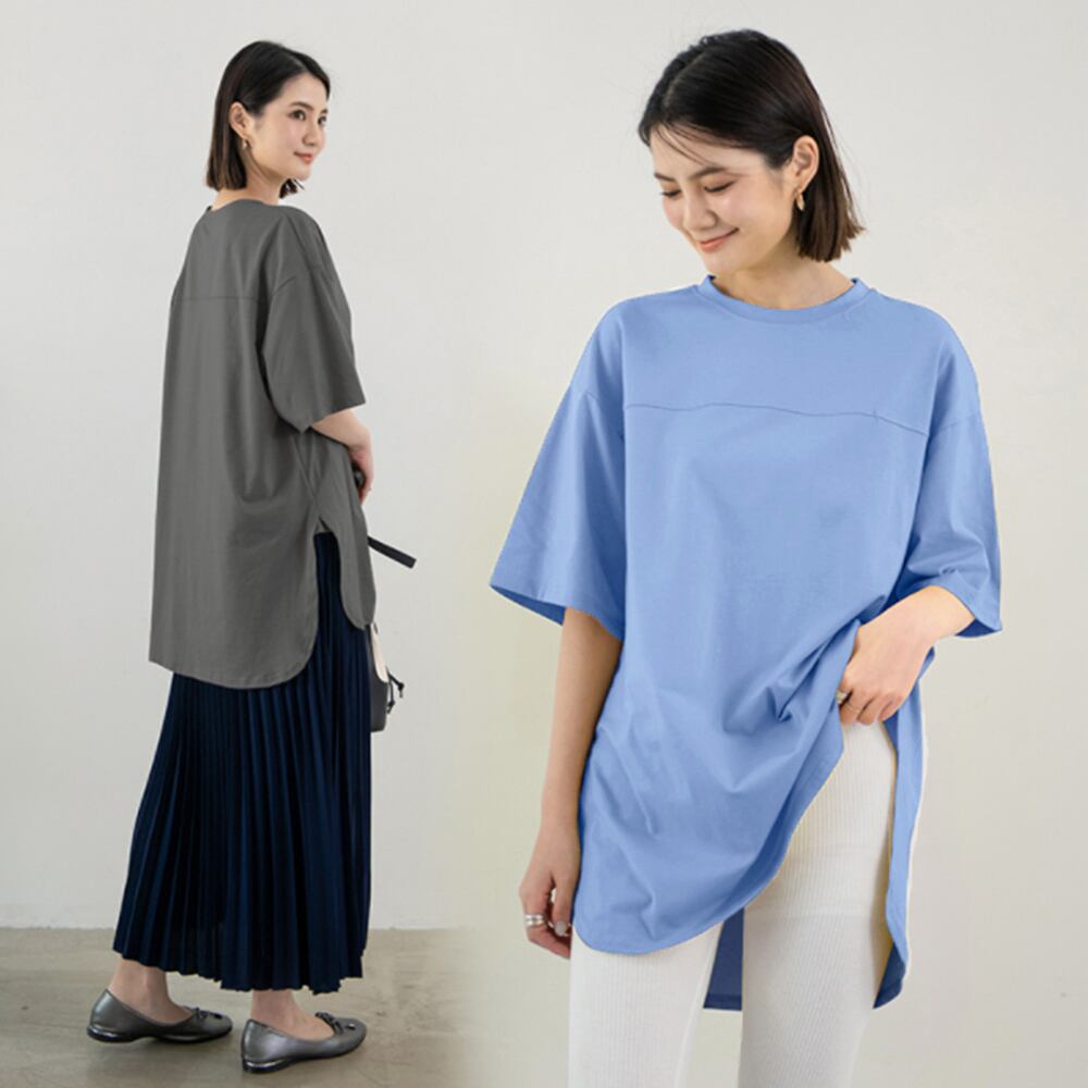 柔らかく伸縮性に優れたカットソー生地は、暑い季節も涼し気な印象に仕立てる