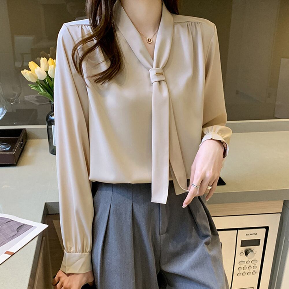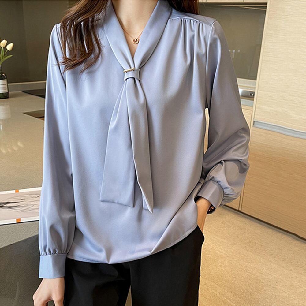 韓国上品 スカーフタイブラウス オフィスカジュアル トップス 大人女性 とろみシャツ通勤長袖シャツブラウス 30代40代