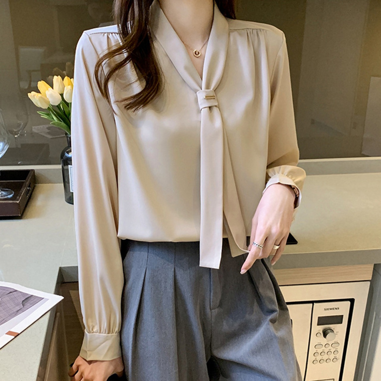 ドレープシャツ春秋 リボンタイブラウス OLコーデおしゃれ