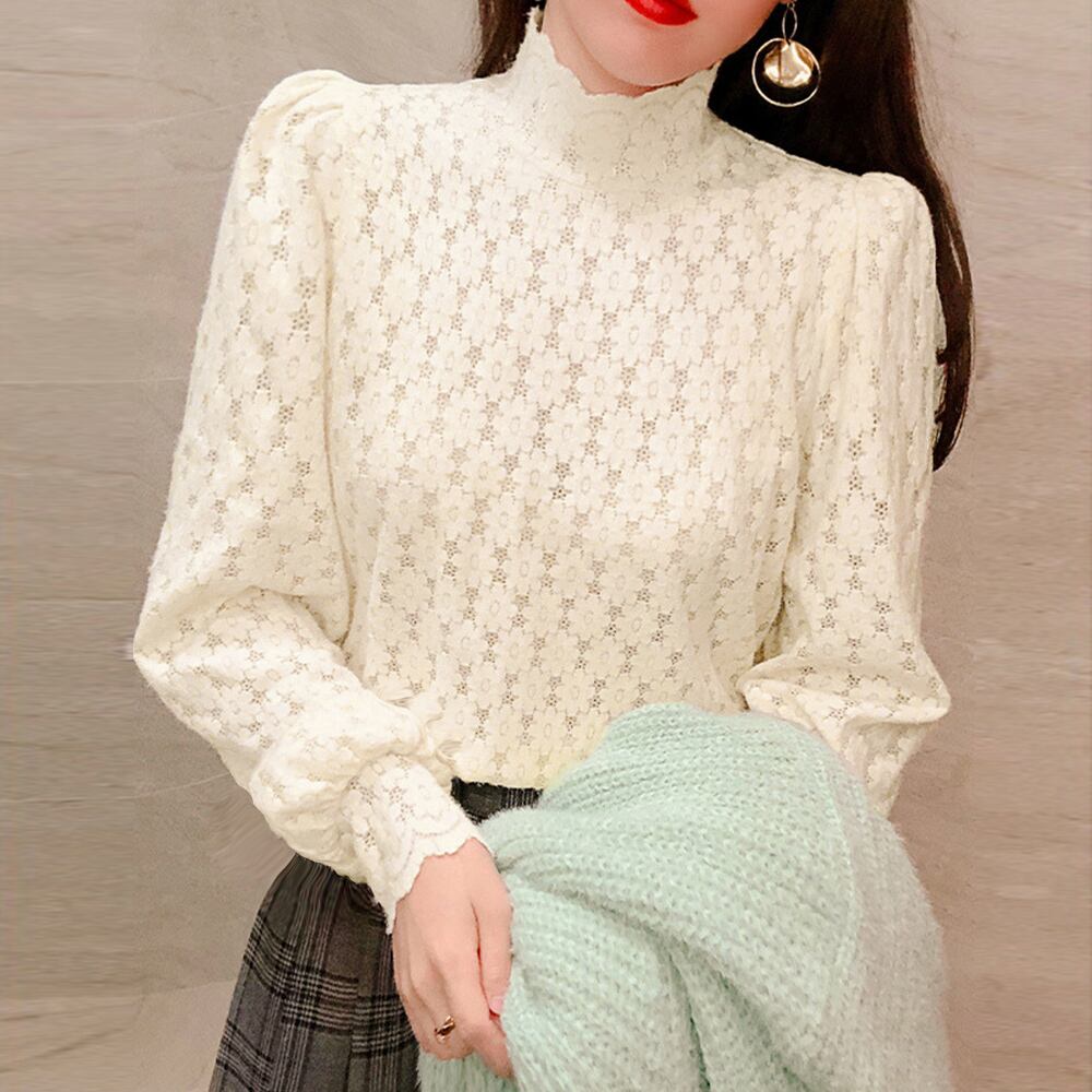 ふんわりとボリューム感のある袖のシルエットが可愛い、フラワー柄やレース仕様がポイント、フェミニンの魅力を演出してくれるハイネックブラウス